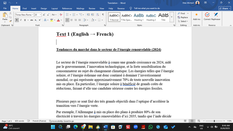 I am a native French speaker and a multilingual translator with over three years of experience in French-English translation. I also provide transcription and subtitling/captioning services too. I always deliver on time and make sure my work is accurate and clear, which clients have confirmed, especially in legal projects. I have a bachelor’s degree in English, and I am currently pursuing a master’s degree. I help people communicate better across languages, and I am ready to bring my translation, transcription, and subtitling skills to meet the needs of international employers.