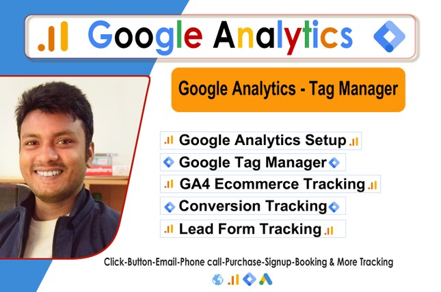 I will google analytics setup, ads conversion tracking, ga4 ecommerce tracking by GTM Install