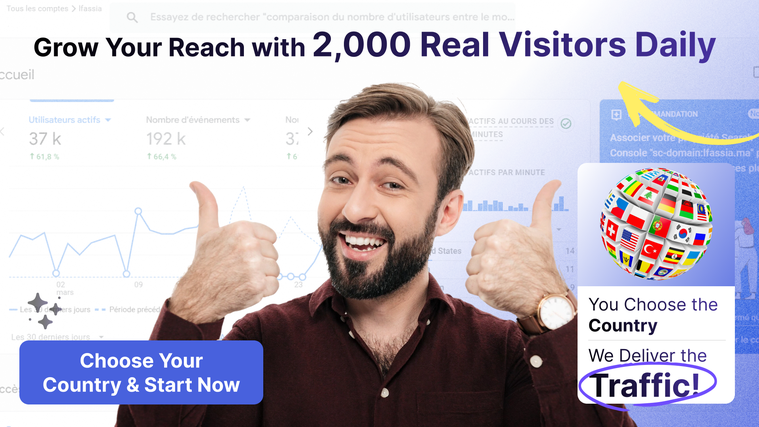 We guarantee up to 2,000 real visitors per day, coming from the country of your choice — ensuring an audience perfectly aligned with your target market.