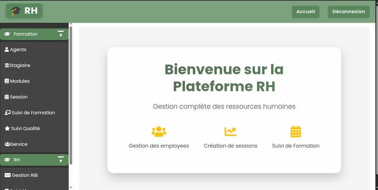 Développement d’une application web interne en Laravel, connectée à une base de données MySQL, selon le modèle MVC. L’application permet la gestion des RIB et des congés du personnel, ainsi que la création et le suivi des sessions de formation pour les agents et stagiaires. Mise en place de différents niveaux d’accès pour la RH et les responsables de formation.