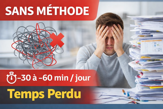 Sans méthode : vous perdez 30–60 min/jour (minimum)