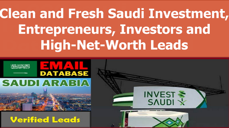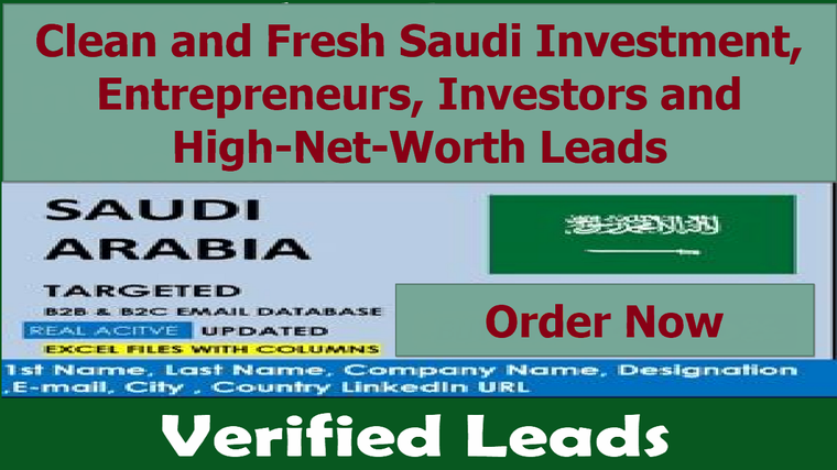 - 10,295 verified investment contacts from Saudi Arabia (If you need the whole 31,000 Clean and Fresh Saudi Investment, Entrepreneurs, Investors and High-Net-Worth Leads, check the extra option to order).
