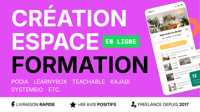 Je mets en place votre espace de formation sur LearnyBox, Systeme.io, Podia, ou autre plateforme, avec :