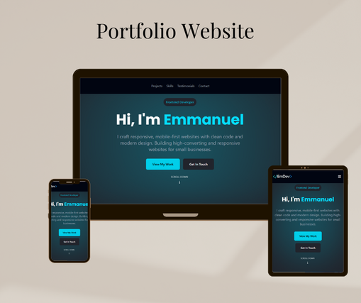 I’m Emmanuel, a front-end developer who helps businesses bring their ideas to life online. Since graduating in 2024, I’ve worked with FHG Organization, building fast, responsive, and modern websites using HTML, CSS, Tailwind CSS, and JavaScript. Every project I create is custom-built to match your goals and showcase your brand in the best light.