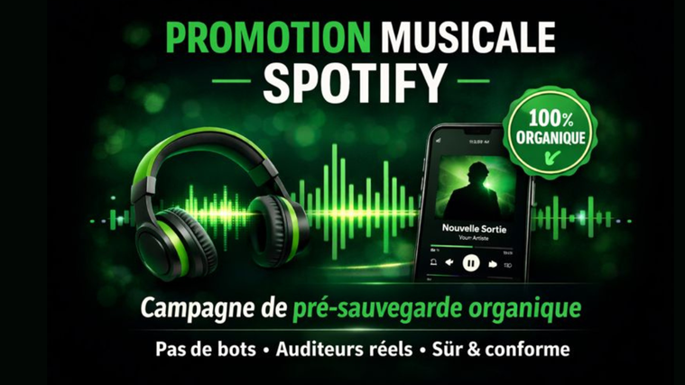 Je vais booster la présélection de votre musique sur Spotify grâce à une promotion organique réelle