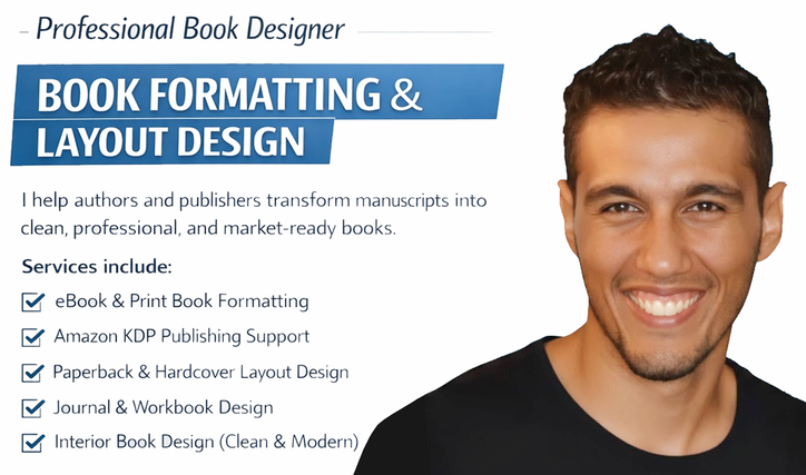 🎨 Hi, I’m Ali — your KDP book designer with 15+ years of experience! I help authors, self-publishers, and businesses create beautiful, print-ready books that stand out on Amazon. 💼 My Services ✔ KDP interiors (journals, planners, logbooks, activity books) ✔ Custom KDP covers ✔ Restaurant & business books ✔ Multilingual (English, French & Spanish) ✔ Full book formatting & print-ready PDFs ⭐ Why choose me? ✔ Clean, modern, bookstore-quality work ✔ 100% KDP-ready files that upload with zero errors ✔ Friendly, reliable, and fast Let’s create a book that stands out — start your project now!