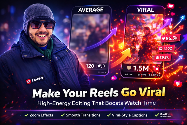 The difference between average content and viral Reels/TikToks isn’t luck… it’s strategy and editing. If your videos aren’t grabbing attention in the first 3 seconds, viewers scroll — and your reach dies.