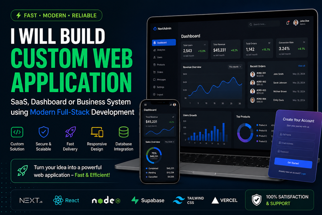 I will build custom web application, SaaS, dashboard or business system using modern full-stack development