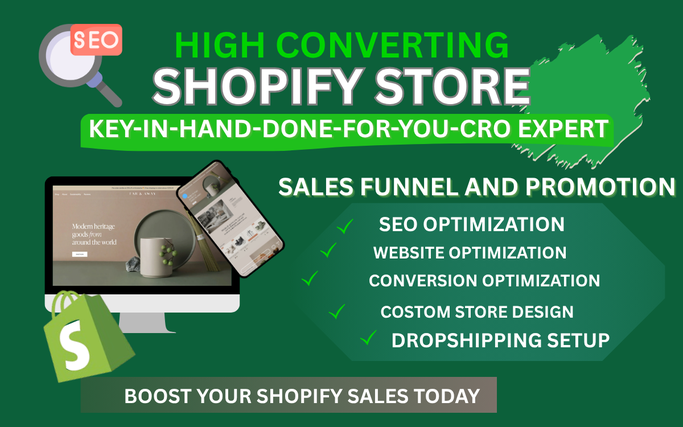 I will create a high converting shopify store key in hand done for you website setup and optimization