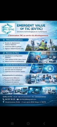 EVTIC est une société de Télécommunications et de services digitaux. Elle offre des services novateurs et a pour vision de permettre une facilité de vie aux citoyens grâce au TIC