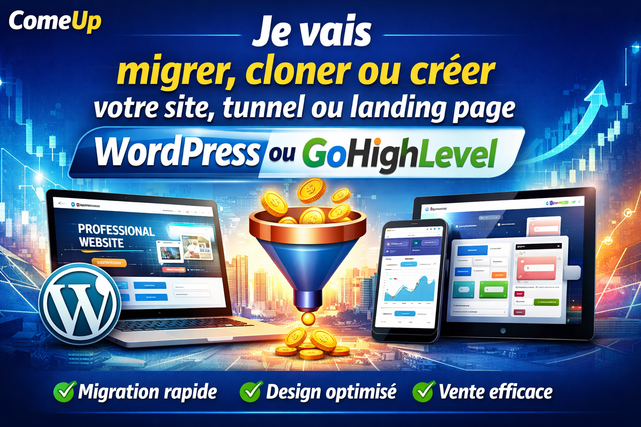 I will Migrez, clonez ou créez votre site web WordPress ou GoHighLevel, votre entonnoir de vente ou votre p