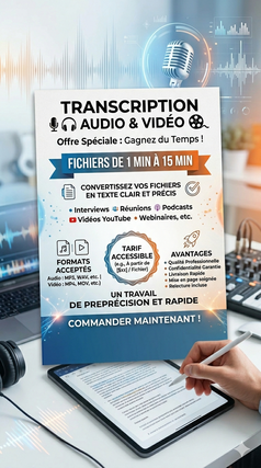 Je vais transforme vos enregistrements en textes clairs et précis. Que ce soit des interviews ou podcasts