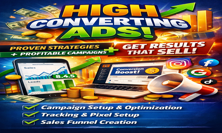 I will run high converting ads with full setup, tracking sales funnel optimization