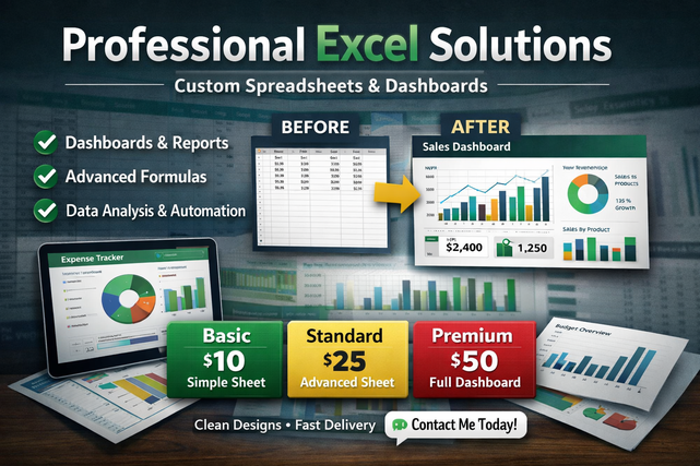 I will create professional Excel dashboards and spreadsheets
