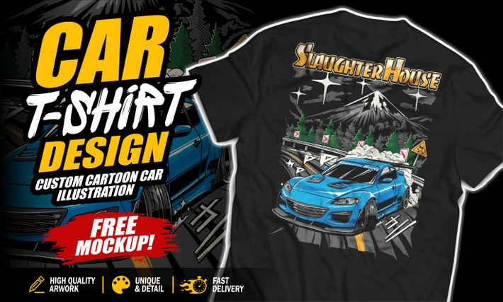 I will create custom car t shirt design with cartoon style