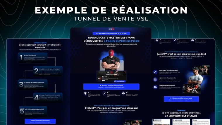 - Un tunnel VSL pensé pour être beau, crédible, optimisé et fonctionnel