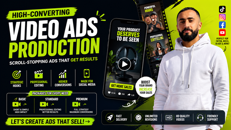 I create scroll-stopping video ads designed to capture attention, build trust, and drive sales on platforms like TikTok, Instagram, and Facebook.