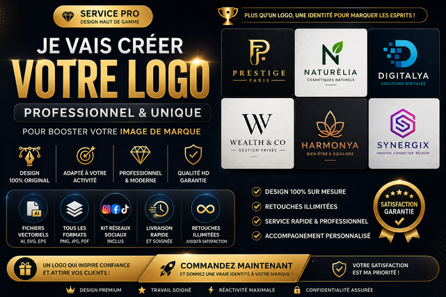 Je vais créer un logo professionnel unique et stratégique pour booster votre image de marque