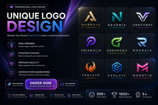 I will design a high-quality logo that captures your brand identity and helps you stand out from the competition.