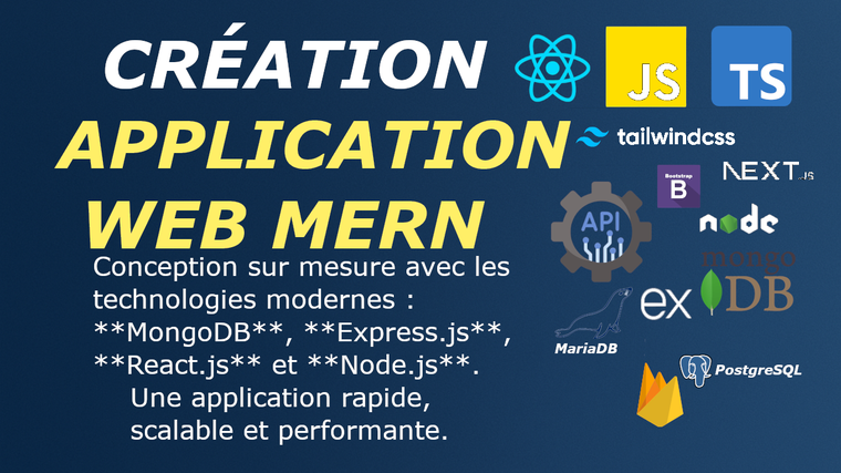 React.js, Node.js, Express.js, MongoDB (stack MERN), ainsi que PHP/MySQL, HTML5, CSS3, Bootstrap et JavaScript.