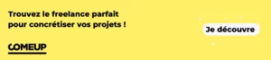 Des marketplaces freelance comme ComeUp, Upwork et Fiverr vous permettent de consulter les portfolios, comparer les prix et collaborer en toute sécurité avec des freelances. Elles garantissent des transactions sûres qui vous assurent d’obtenir ce que vous avez commandé.