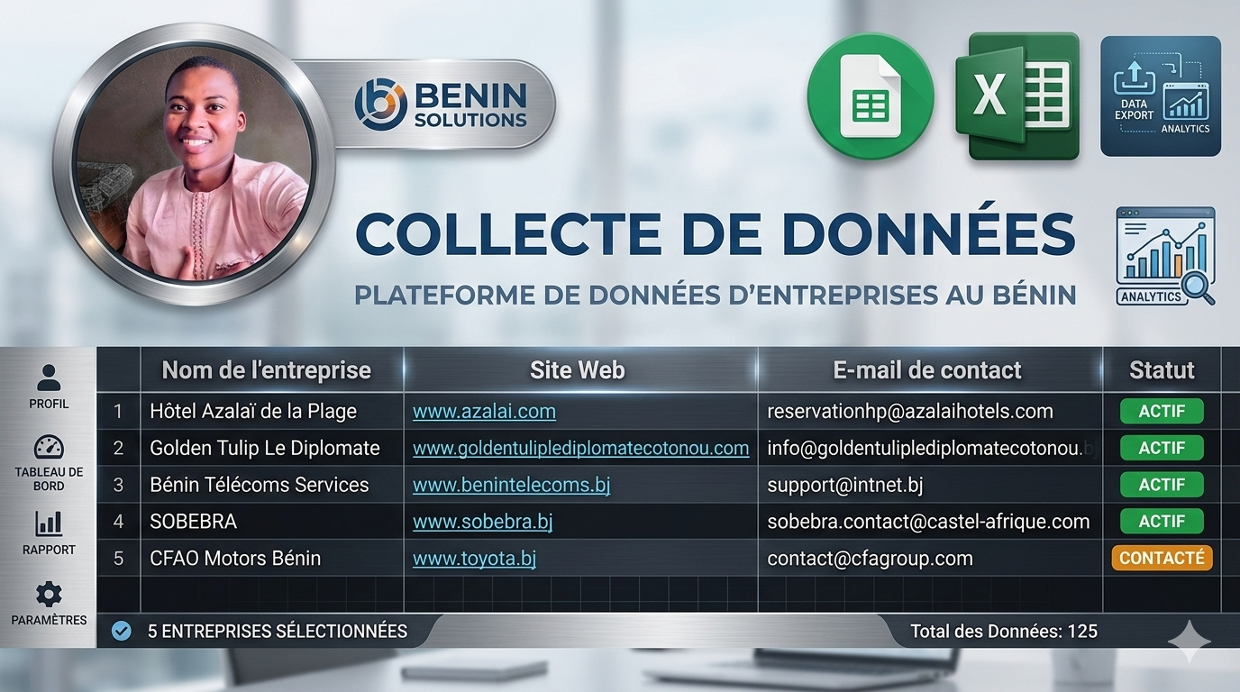 Expert en extraction de données et veille stratégique. J'utilise la recherche avancée Google et l'IA pour créer des bases de données vérifiées et organisées sous Google Sheets pour vos projets de prospection.
