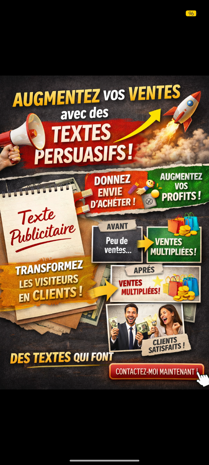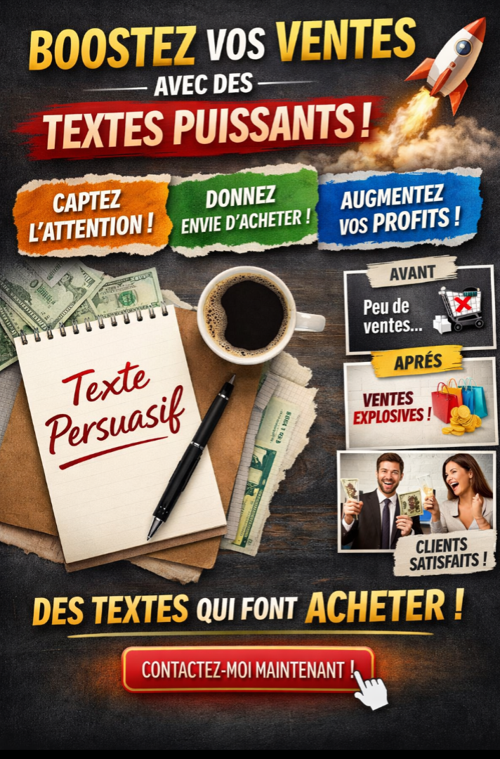 Je vais je rédige des textes marketing persuasifs pour attirer plus de clients et augmenter vos ventes vite