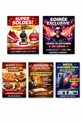 Je crée des flyers professionnels pour : ✔️ Entreprises ✔️ Commerces ✔️ Événements ✔️ Promotions ✔️ Églises et activités