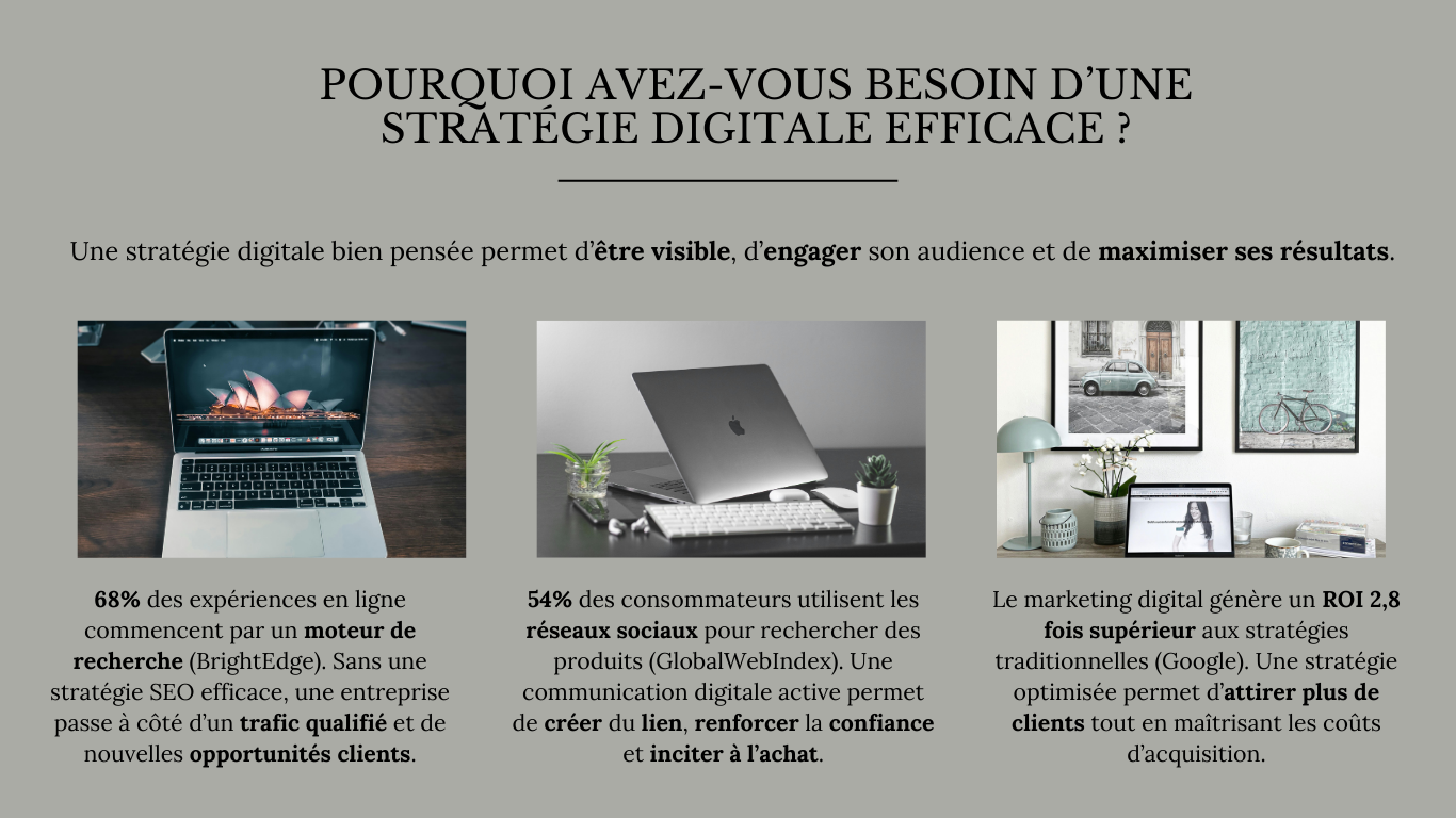 Aujourd’hui, j’aide les entreprises à se démarquer sur le web en concevant des stratégies de communication sur mesure et en créant du contenu authentique et engageant. J’optimise également leur référencement naturel afin de booster leur positionnement sur les moteurs de recherche, attirer une audience qualifiée et maximiser leur retour sur investissement.