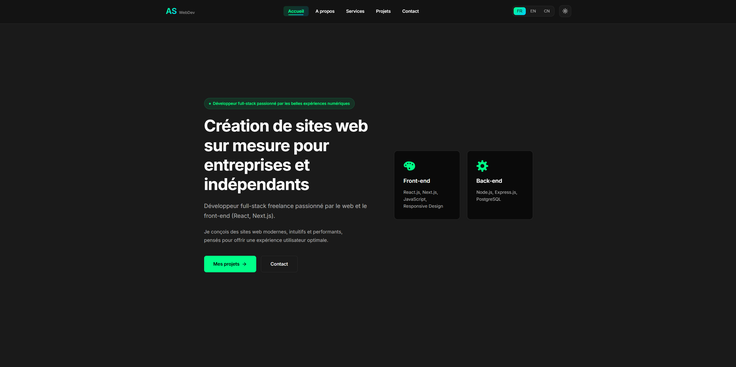 Je suis développeur Web. Avec des compétences en React.js, Next.js, Node.js et Express.js, je m'efforce de concevoir des projets dynamiques et bien structurés. Curieux et motivé, j'aime relever des défis techniques pour continuer à apprendre et évoluer dans ce domaine.