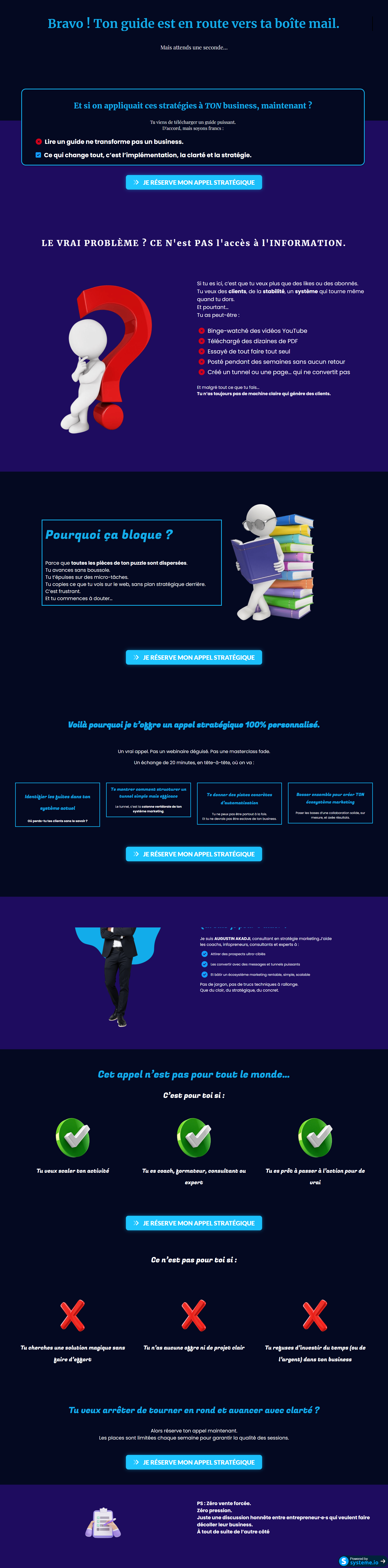 J’aide les coachs, consultants et freelances à scaler leur activité grâce à une stratégie claire, un tunnel de vente efficace, un design premium… et même des shootings photo professionnels réalisés avec l’IA.