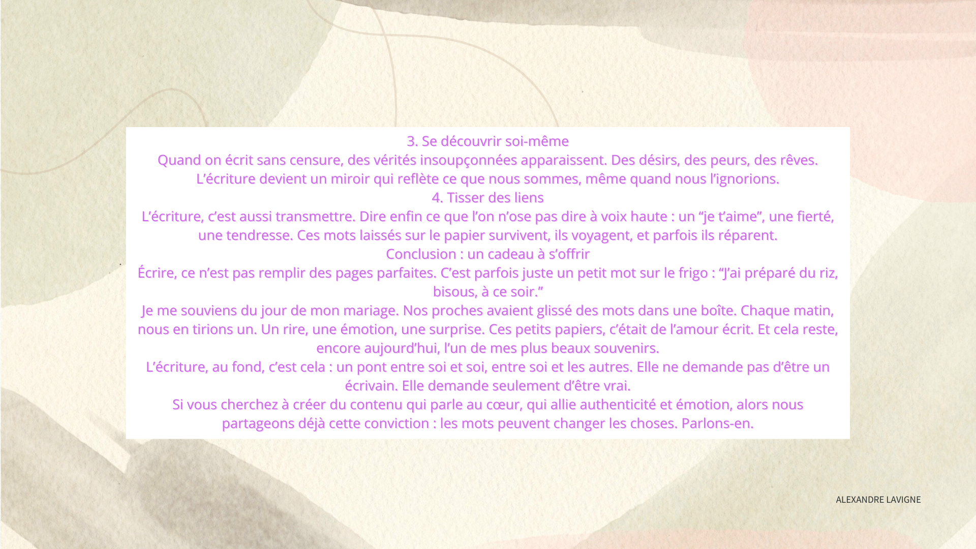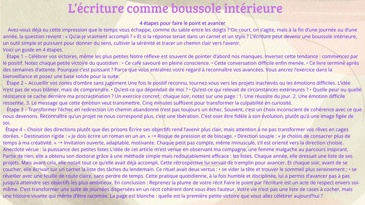 Polyvalence : Je sais écrire à la fois dans un ton intime et incarné (témoignages, anecdotes) et dans un ton structuré et pratique (méthodes, étapes, exercices).