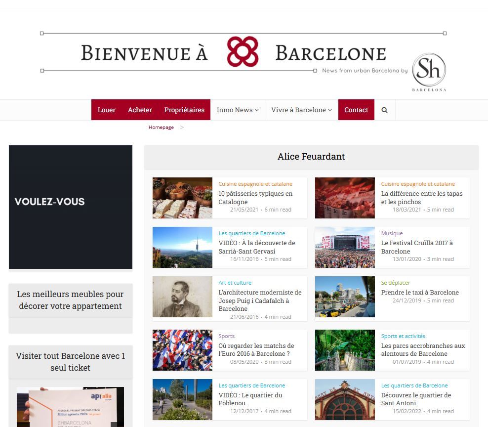 💻 J’ai travaillé pendant six mois à Barcelone au sein d’une agence immobilière, en tant que responsable de blog et rédactrice (2 à 3 articles par semaine). Vous pouvez voir mon travail ici : https://www.shbarcelona.fr/blog/fr/author/afeuardant/.