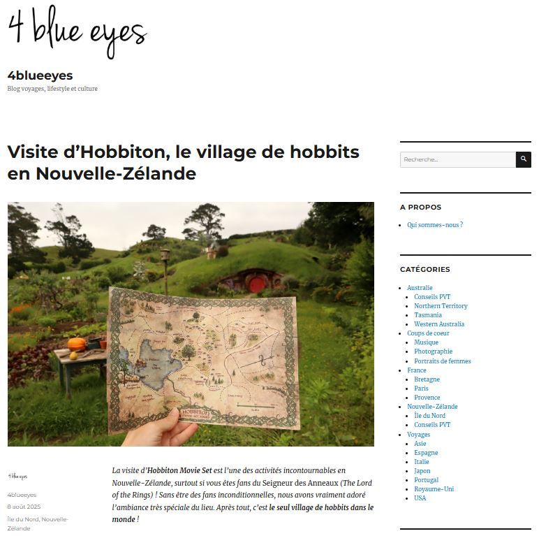 J’ai créé, avec ma sœur jumelle, le blog www.4blueeyes.wordpress.com qui traite essentiellement de voyages, culture et lifestyle.
