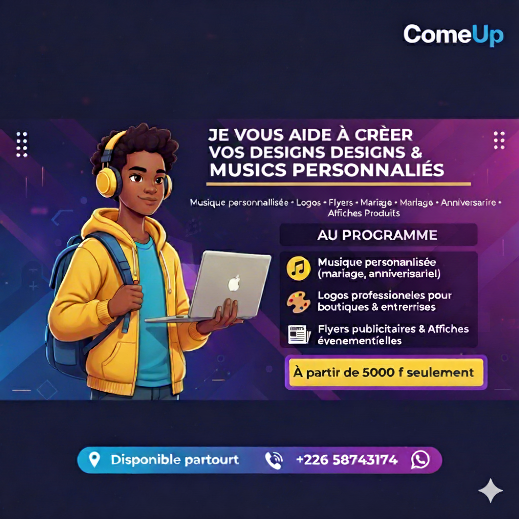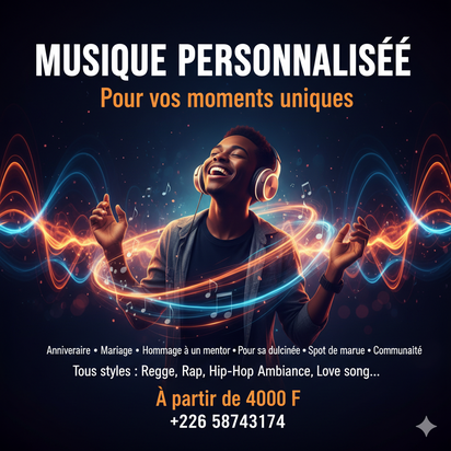 Création de musiques sur mesure pour événements (anniversaires, mariages, hommages, campagnes de marque). Réalisation de visuels impactants : affiches, logos, couvertures et photos professionnelles. Collaboration avec des particuliers, entrepreneur