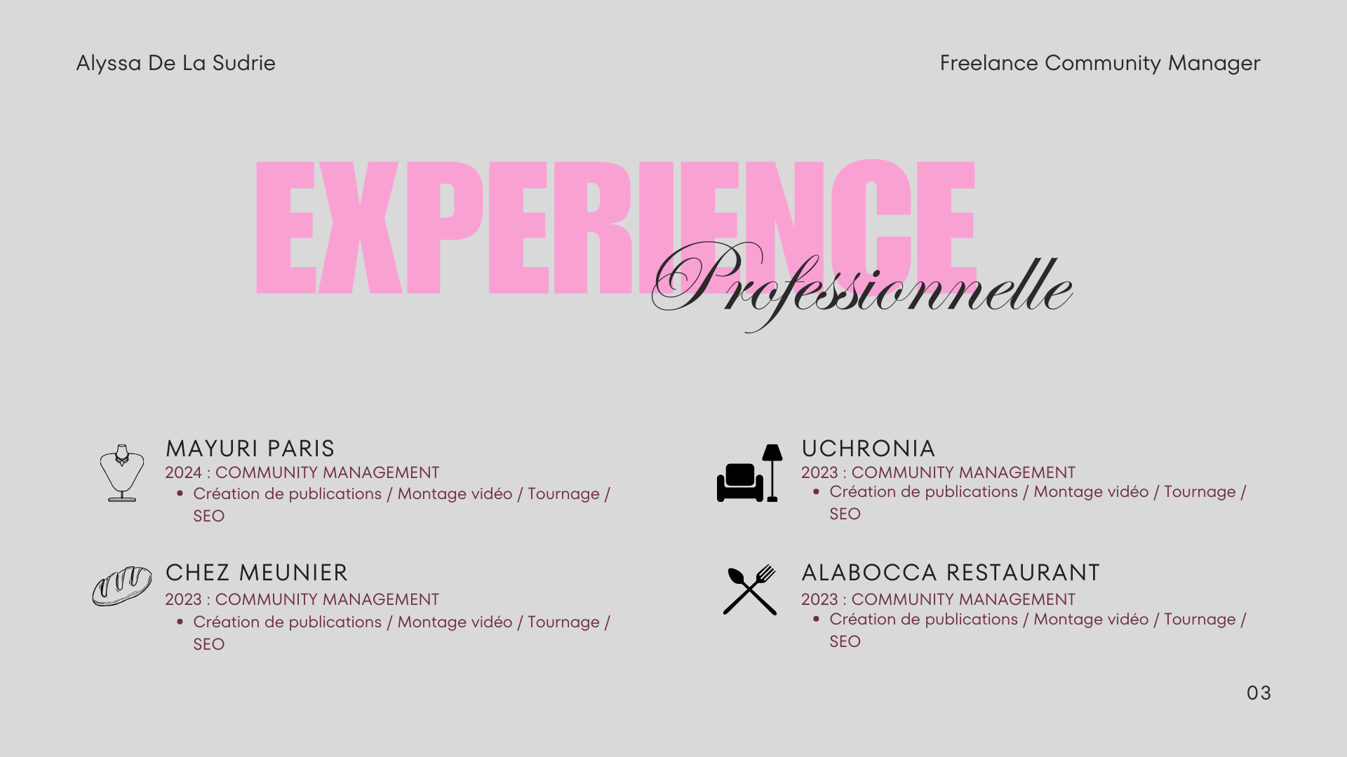 -Tournage -Montage vidéo -Création de posts -