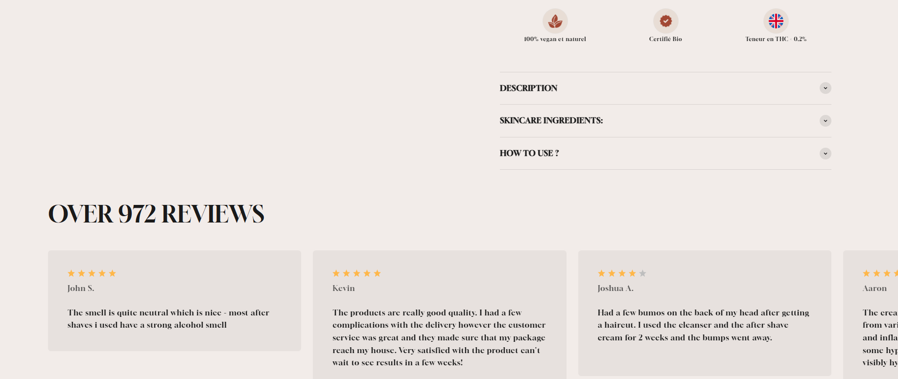 Je ne me contente pas de “poser un thème”. Je réfléchis avec vous à la manière dont le client découvre votre marque, lit votre page et décide d’acheter. Chaque section a un rôle : capter l’attention, rassurer, répondre aux objections, guider vers l’achat.