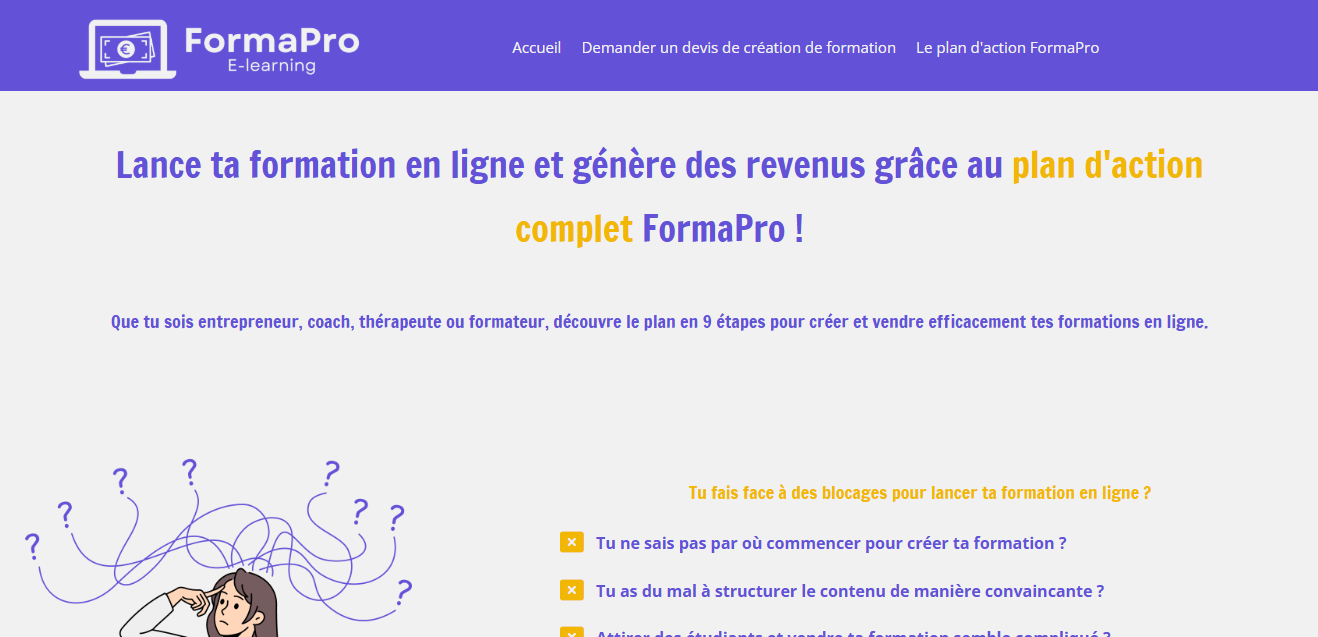 - Création de formations en ligne complètes : Je prends en charge tout le processus, de la conception du contenu à sa mise en ligne, pour vous permettre de vendre des formations prêtes à l’emploi.