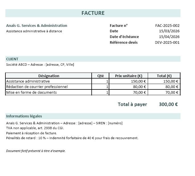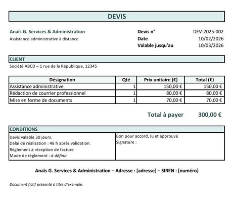 Je propose des prestations administratives payantes, réalisables entièrement à distance, pensées en priorité pour les indépendants, professions libérales et TPE.