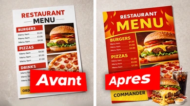 Je vais créer un flyer menu restaurant qui donne faim et augmente vos commandes
