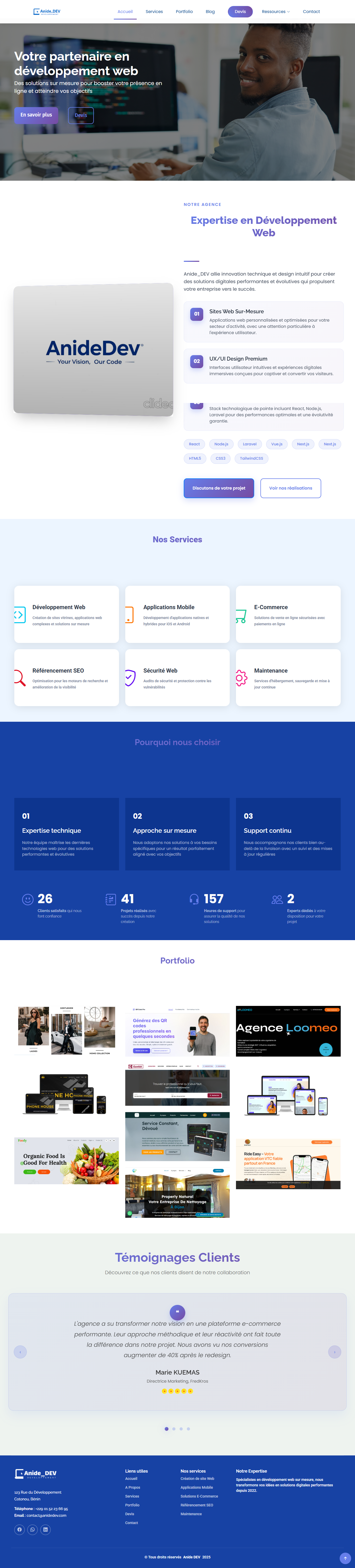 Je suis Anide ANANI, professionnel ayant 7 années d'expérience dans la Création. Je transforme vos idées en sites web modernes, rapides et performants. Mon objectif : créer des solutions professionnelles, esthétiques et orientées résultats.