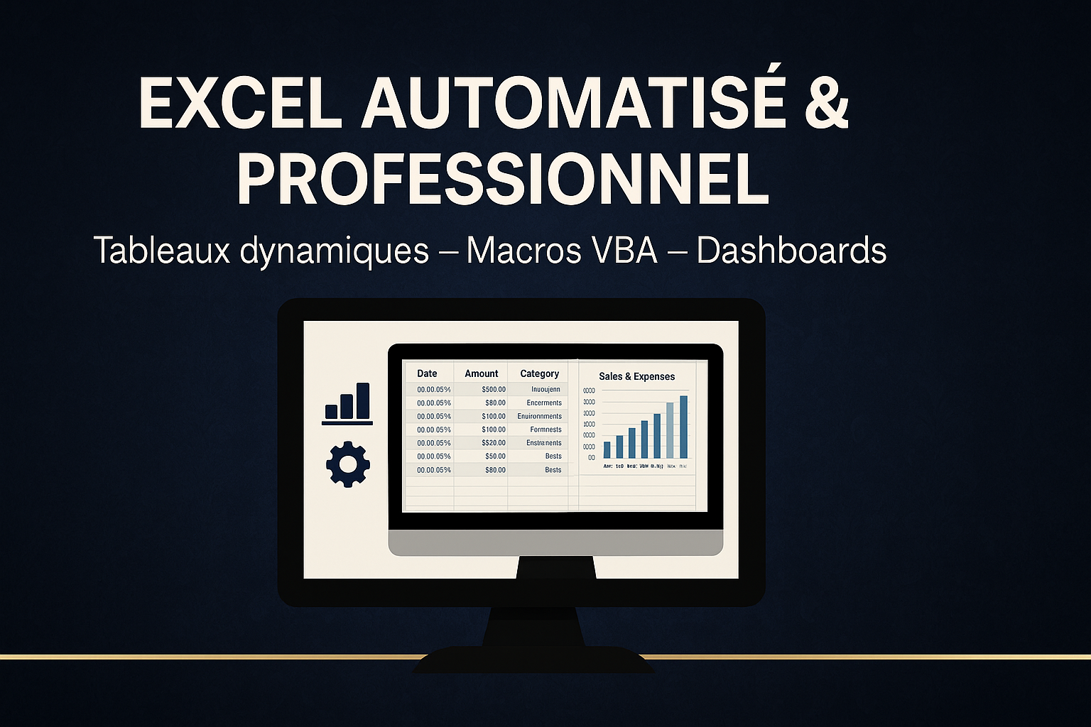 🔹 Excel & Data – Création de fichiers automatisés, tableaux de bord professionnels, macros VBA, reporting dynamique. Mon objectif : transformer vos données en outils puissants, clairs et performants.