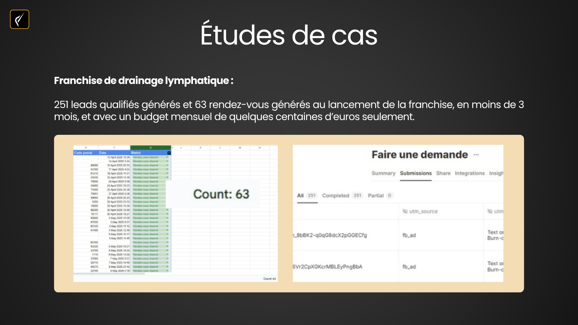 Génération de leads et de rendez-vous qualifiés pour cette franchise de drainage lymphatique en lancement. Missions : - Mise en place du business manager Facebook - Mise en place de l'API de conversion pour le tracking - Création d'une landing page -