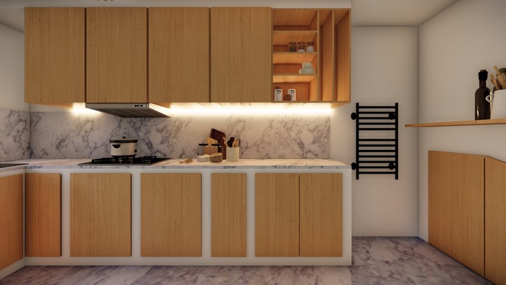 Je vais concevoir votre cuisine en 3D avec rendus réalistes et plans techniques prêts pour chantier