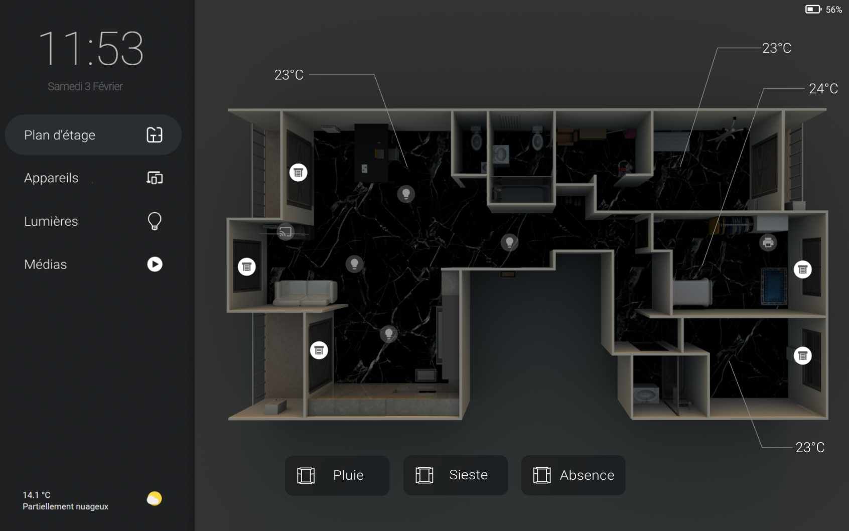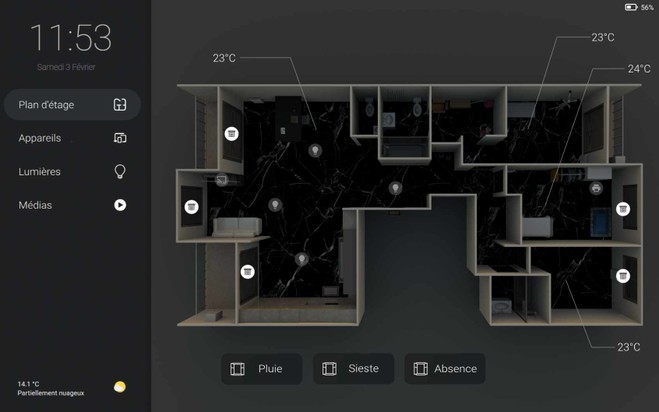 ✅ Je conçois des interfaces modernes, épurées et responsives 📱 Optimisées pour smartphones, tablettes ou écrans muraux 🏠 Intégration de floorplans interactifs (plans de maison dynamiques) 🧠 Utilisation de cartes avancées : button-card, mod-card, swipe-card, etc. 🎨 Design 100 % personnalisable : couleurs, icônes, thèmes, animations 🔧 Accompagnement pour les intégrations (HACS, thèmes, modules…) 🤝 À l’écoute de vos préférences et idées — je m’adapte à chaque projet