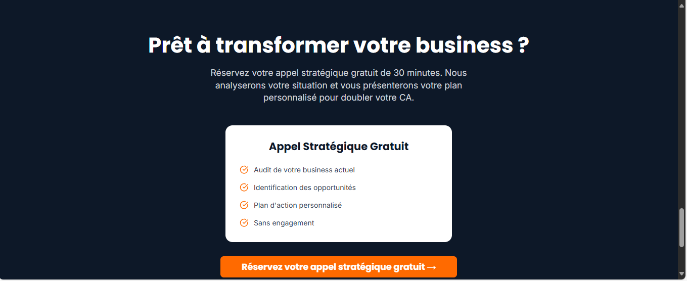 🚀 Une landing page optimisée pour la conversion (formulaires, call-to-action, etc.)