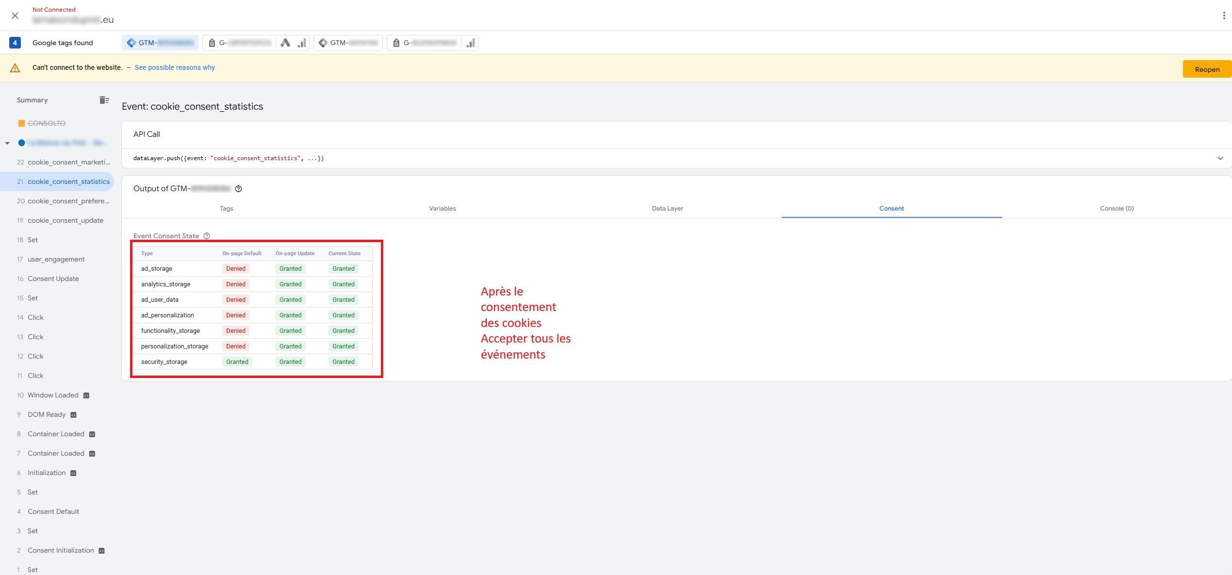 Je vais déployer l'humeur de consentement aux cookies v2 avec précision en utilisant GTM, ga4 pour le suivi