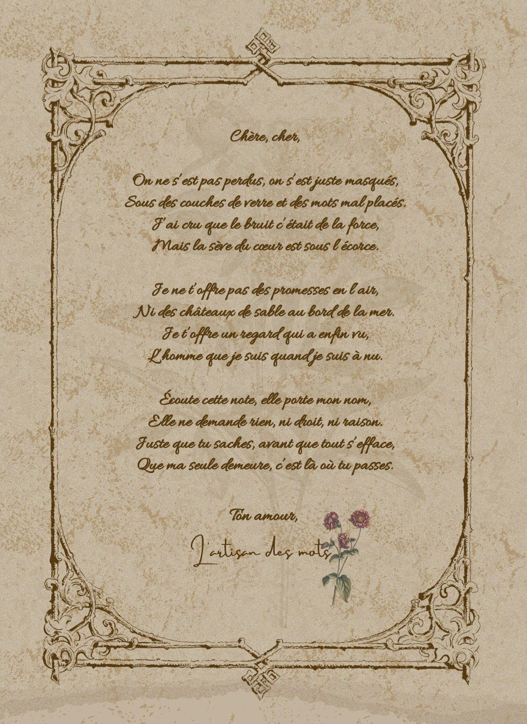 **Bienvenue dans l'atelier de l'Artisan des Mots. ** Le silence est parfois le mur le plus difficile à briser. À 46 ans, j'ai appris que les mots les plus puissants ne sont pas les plus bruyants, mais les plus sincères. Ceux qui partent du cœur pour atteindre celui de l'autre.