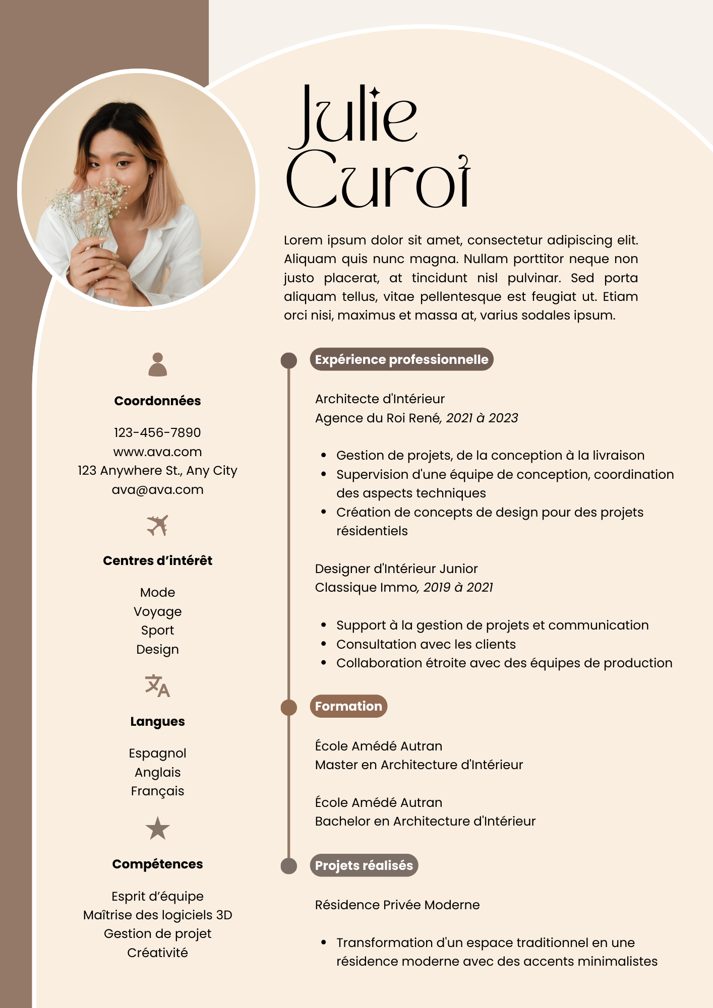 Je suis Ava, diplômée en design et couleur, avec une spécialité Espace & Graphisme. J’aime créer des visuels qui sont à la fois harmonieux, clairs et adaptés à chaque besoin.