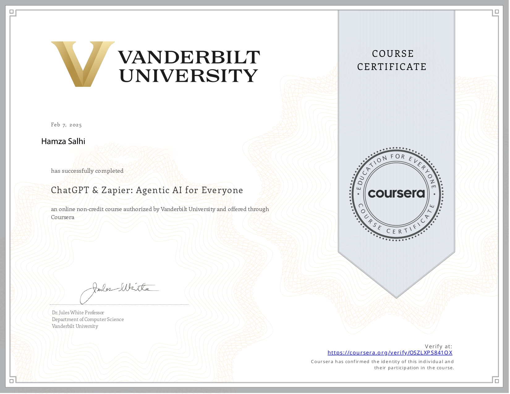 - Chatgbt & Zapier : Agentic Ai for everyone Vanderbilt university ‐ févr. 2025